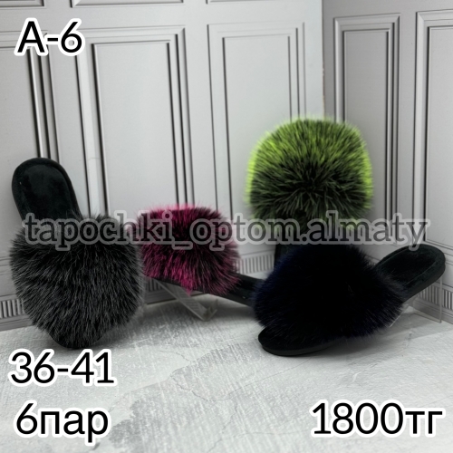 Женские тапочки открытые с мехом Производство Китай В упаковке 6пар разного цвета